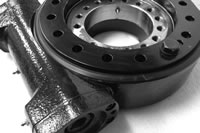 Complete with ring gear, worm gear, bearings and orbit motor. Thanks to its high performances, the slew ring drive is a compact, simple and economical solution for the rotation drive of small cranes and aerial platforms. Continuous torque up to 4500 Nm.